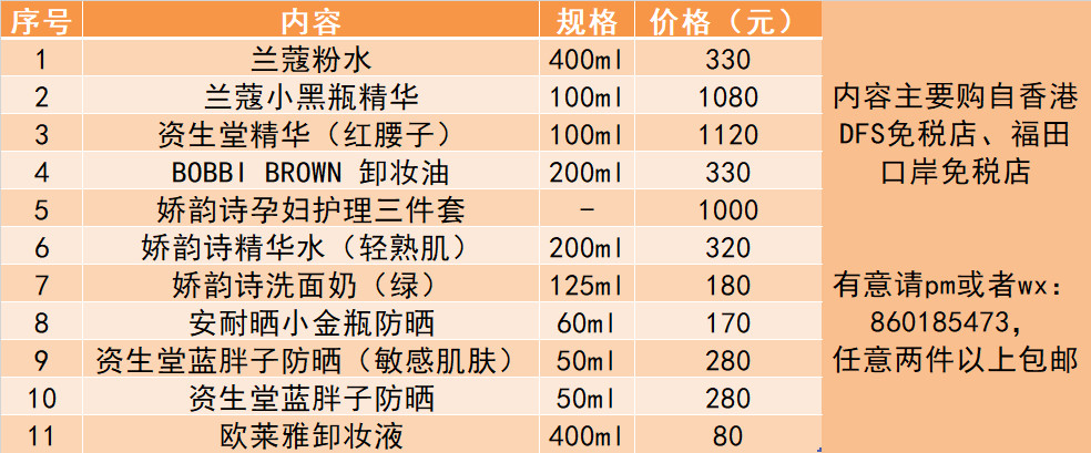 内容主要购自香港DFS免税店、福田口岸免税店